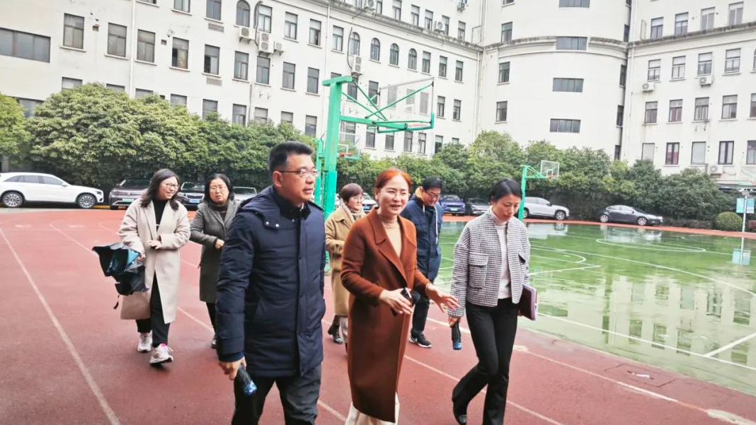 2024年2月22日下午,浦东新区教育工作党委毛力熊副书记、教育局组织人事处吴瑶处长来到我校调研开学准备工作,吕彩玲校长、李可锋书记、陆占萍副校长及中层干部陪同巡视。